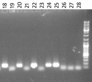 Eventually, the majority of the amplicon in the reaction vessel will be the expected length, i.e. just the region spanned by, and including the primer sequences. We used to use that length (see the adjacent agaorse gel image) to say we’d amplified what we expected when we used gel-based conventional polymerase chain reaction methods.